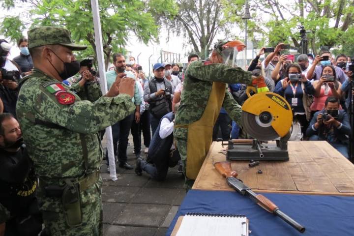 Antes del mediodía en la plaza principal de la tenencia Morelos Un habitante de la localidad llegó con un costal en cuyo interior había una escopeta Winchester está se convirtió en la primera arma entregada al ejército como parte del programa de canje armas el cual el gobernador, Alfredo Ramírez Bedolla en compañía de autoridades federales y municipales, inauguró minutos antes en ese mismo lugar.
