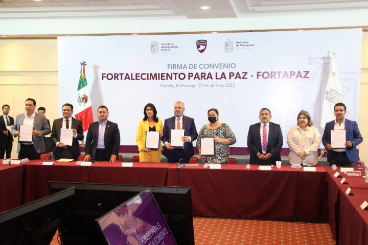 NOTICIAS 29/06/2022A través del Fortapaz, se brinda acompañamiento y recuperación social: SSPEn seguimiento a la estrategia para la disuasión del delito y el reforzamiento en materia de seguridad en todo el territorio estatal, con la incorporación de 100 de los 113 municipios michoacanos a la firma del convenio del Fondo para el Fortalecimiento de la Paz (Fortapaz), se avanza significativamente en la recuperación del orden social en el estado.
