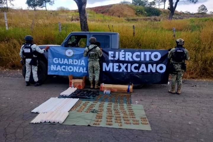NOTICIAS 09/11/2025Ejército y Guardia Nacional aseguran material explosivo y armamento, en CotijaDerivado de los constantes operativos en la región de Cotija, zona limítrofe entre Michoacán y Jalisco, personal de la Secretaria de la Defensa Nacional, logro el aseguramiento de una camioneta en la que eran transportados más de 52 kilos de material explosivo y armamento.