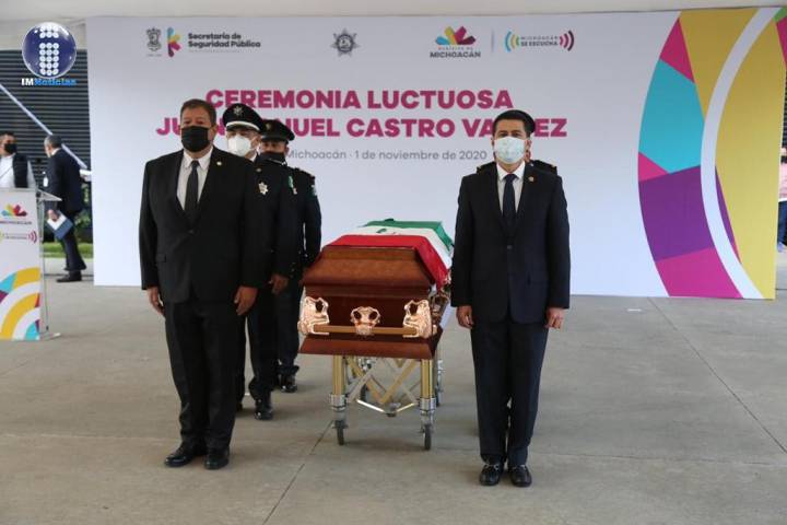 NOTICIAS 01/11/2020Rinde homenaje SSP a elemento caído en cumplimiento del deber La Secretaría de Seguridad Pública (SSP), rindió homenaje al elemento caído en cumplimiento del deber, Juan Manuel Castro Valdez, fallecido anoche durante un hecho de tránsito en el municipio de Tangancícuaro; durante la ceremonia, el secretario de Seguridad Pública, Israel Patrón Reyes, destacó el trabajo del agente de la Policía Michoacán.