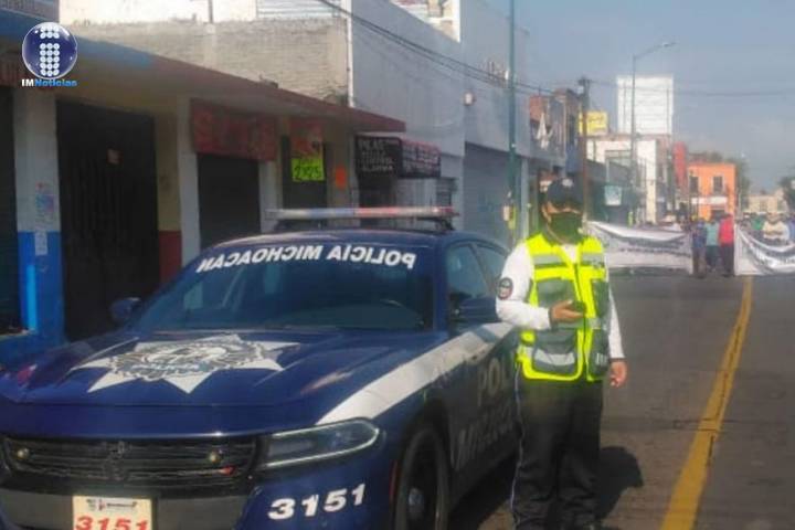 Oficiales de Tránsito y Movilidad de la Policía Michoacán, mantienen acciones operativas sobre la calle Benedicto López en dirección a la avenida Lázaro Cárdenas, ante una manifestación que realiza un grupo ... Ver más...