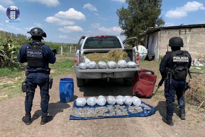 Derivado de diversas labores encaminadas a la disuasión del delito, los agentes de la Policía Michoacán efectuaron el aseguramiento de 42 kilos de marihuana, así como 9.9 kilogramos de metanfetamina.