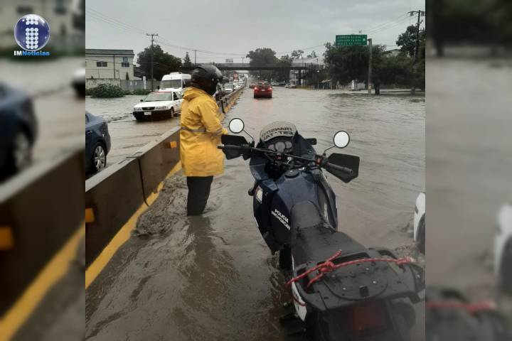 Elementos de la Dirección de Tránsito y Movilidad efectúan trabajos para agilizar la circulación toda vez que se registran altos niveles de agua en los siguientes sitios: