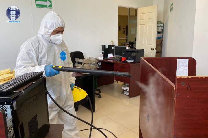 NOTICIAS 14/07/2020Refuerza SSP medidas sanitarias de protección a la salud del personal A fin combatir el COVID-19 y preservar la salud del personal de la Secretaría de Seguridad Pública (SSP), de manera periódica se efectúa la sanitización de espacios como oficinas administrativas y complejos policiales; asimismo, se toma la temperatura, se aplica gel antibacterial y se utilizan cubrebocas.