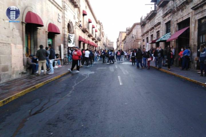Agentes de la Tránsito y Movilidad de la Policía Michoacán mantienen presencia en la calle Abasolo, del Centro Histórico de la capital michoacana, realizando acciones preventivas co... Ver más...