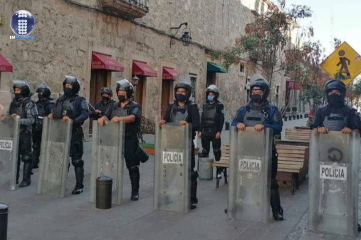 NOTICIAS 03/06/2020Mantiene SSP dispositivo de vigilancia en el Centro Histórico de MoreliaPara preservar el orden y garantizar la tranquilidad en el primer cuadro de la capital, la Secretaría de Seguridad Pública (SSP), mantiene un dispositivo de vigilancia en las inmediaciones de Palacio de Gobierno, ante una posible manifestación que se prevé, arribe al sitio.