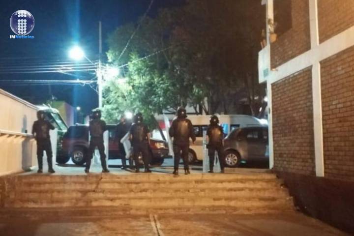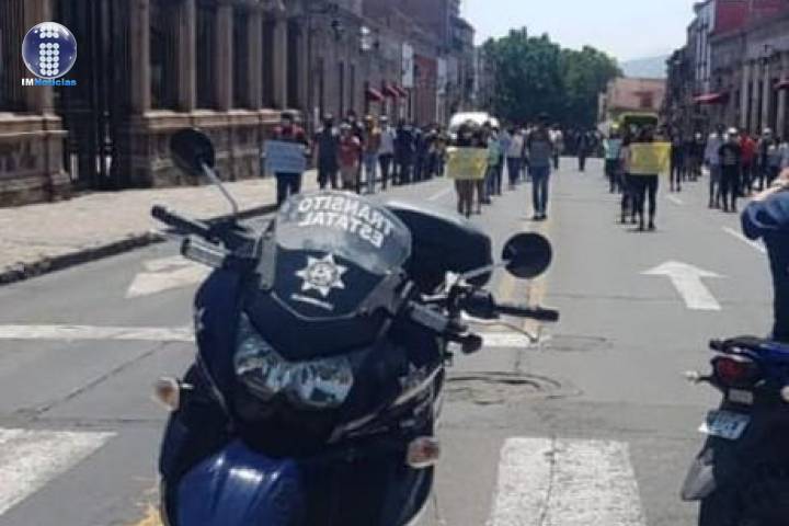 Con el objetivo de preservar el orden, elementos de la Secretaría de Seguridad Pública (SSP), mantienen labores de vigilancia ante una manifestación que se desarrolla en la zona Centro Morelia.
