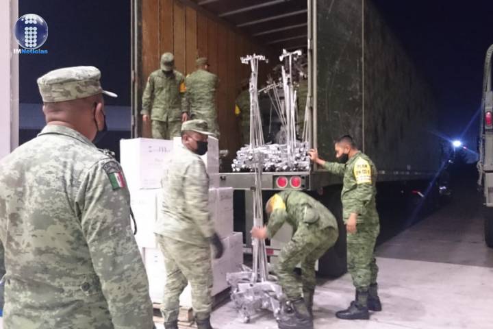 NOTICIAS 26/05/2020Ejército y Fuerza Aérea Mexicanos trasladan insumos médicos, medicamentos, equipo médico y equipo de protección, para los Hospitales INSABI en Michoacánla Secretaría de la Defensa Nacional informa que como parte de las acciones implementadas por el Gobierno de México con motivo de la contigencia de salud ocacionada por el COVID-19, esta fecha elementos del Ejército y Fuerza Aérea Mexicanos en aplicación del PLAN DN-III-E, trasladan vía terrestre 290 metros cúbicos de insumos médicos, medicamentos, equipo médico y equipo de protección de la Ciudad de México a la Cd. de Morelia y Marava... Ver más...