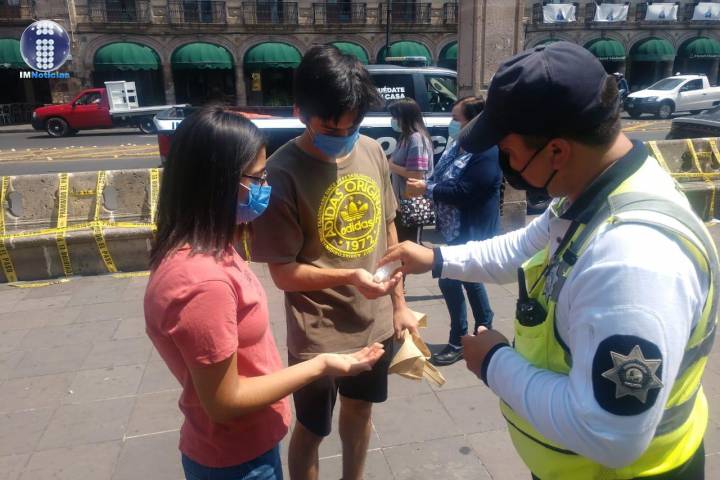 NOTICIAS 25/04/2020Realiza SSP trabajos contra el COVID-19 en el Centro de Morelia La Secretaría de Seguridad Pública (SSP), a través de la Dirección de Tránsito y Movilidad, continúa con la implementación de acciones preventivas para frenar la propagación del COVID-19, en esta capital michoacana, donde abordan a transeúntes y les distribuyen gel antibacterial.