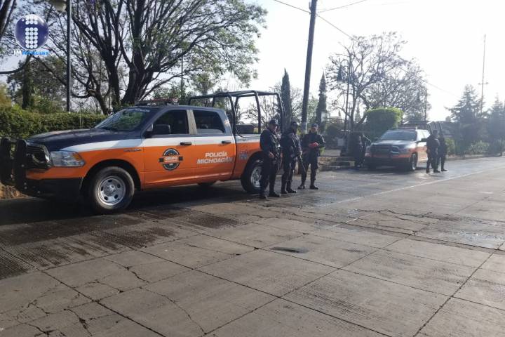 Cuatro binomios de la PolicÃa Michoacán efectúan acciones de seguridad en las inmediaciones de la tenencia Morelos, esto con la intención de actuar me manera inmediata ante la generación de cualquier hecho ilÃcito.