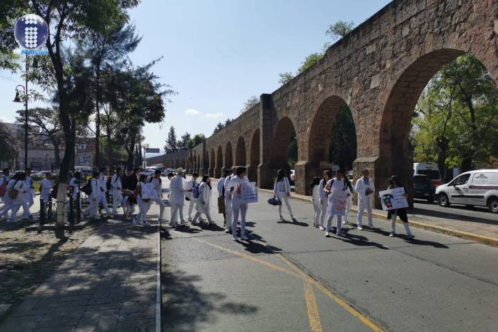 La Secretaría de Seguridad Pública (SSP), desplegó un dispositivo de vigilancia y movilidad, ante una manifestación que se registra en la avenida Acueducto, en Morelia.