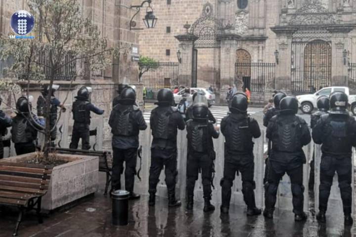 Elementos de la Unidad de Restablecimiento del Orden Público (UROP), de la Policía Michoacán mantienen presencia en el primer cuadro de la capital michoacana, con el objetivo de garantizar la tranqui... Ver más...