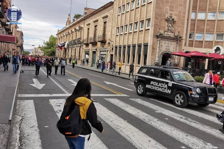 Con la finalidad de salvaguardar a los participantes, elementos de la Policía Michoacán, llevan a cabo tareas preventivas y de movilidad durante el recorrido que partirá desde la fuente Las Tarascas, hacia el primer cuadro de la ciudad.