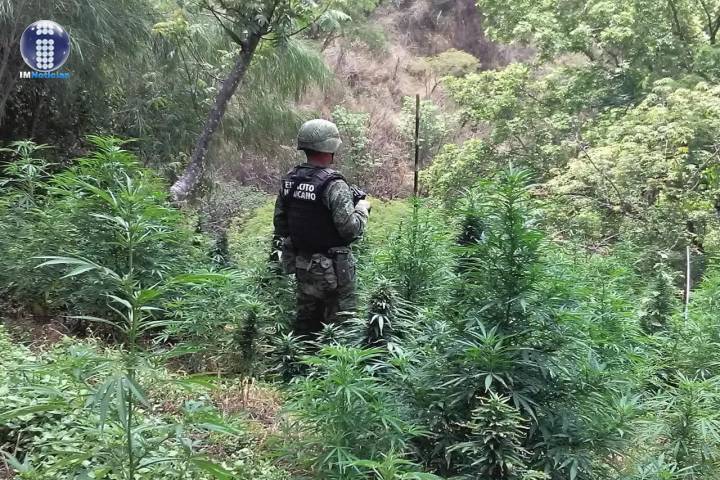 Dentro de lo confiscado está un fusil Barret calibre .50 milímetros, 5 mil 136 cartuchos útiles, 222 cargadores, cuatro granadas, dos lanza granadas; además de 242 dosis de marihuana, 167 plantíos del cit... Ver más...