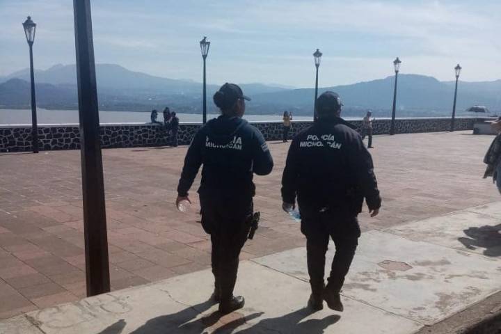 Los elementos de la Policía Michoacán se encuentran desplegados en diferentes puntos del lugar recorriendo a pie a tierra la zona, para atender cualquier emergencia y ayudar a quien lo requiera.