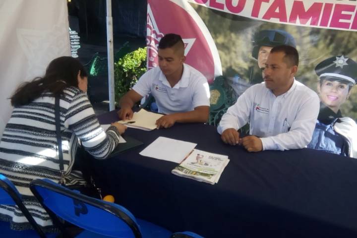 Para continuar con el fortalecimiento institucional, personal de la institución mantienen un stand en la plaza principal de este municipio, lugar donde ofrecen información y orientación a quienes buscan servir al Estado en materia de seguridad.