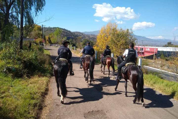 A monta de caballo, los efectivos de la PolicÃa Michoacán recorren brechas y otras vÃas de comunicación donde no pueden acceder unidades, a fin de preservar el orden y evitar la comisión de hechos constituti... Ver más...