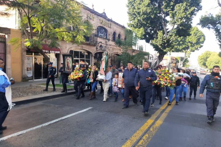 Con la finalidad de salvaguardar a los participantes, elementos de la Policía Michoacán, se llevan a cabo tareas preventivas durante el recorrido que inició en la colonia Nueva Valladolid, hacia el Santuario de Guadalupe.