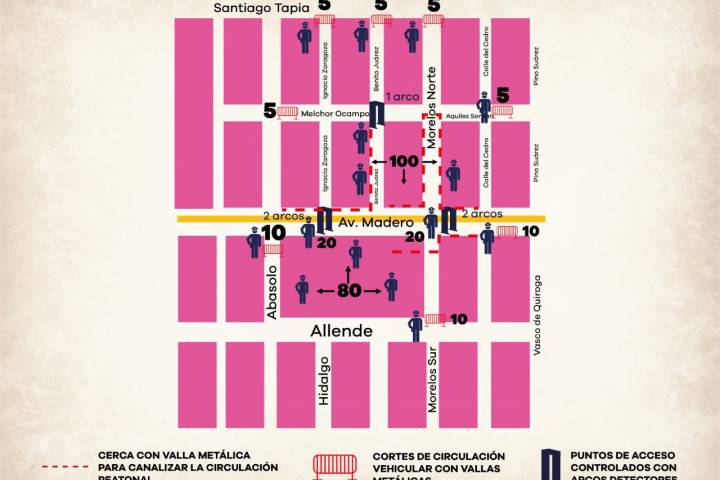 NOTICIAS 08/11/2019Listos, accesos para la inauguración del 75 Congreso y Campeonato Nacional Charro en el Centro de MoreliaCon el objetivo de garantizar el orden y la integridad física de las y los asistentes a la inauguración del 75 Congreso y Campeonato Nacional Charro "José María Morelos", hoy en el Centro de Morelia, la Secretaría de Seguridad Pública (SSP), instaló un dispositivo de seguridad, con cierre de vialidades y accesos controlados.