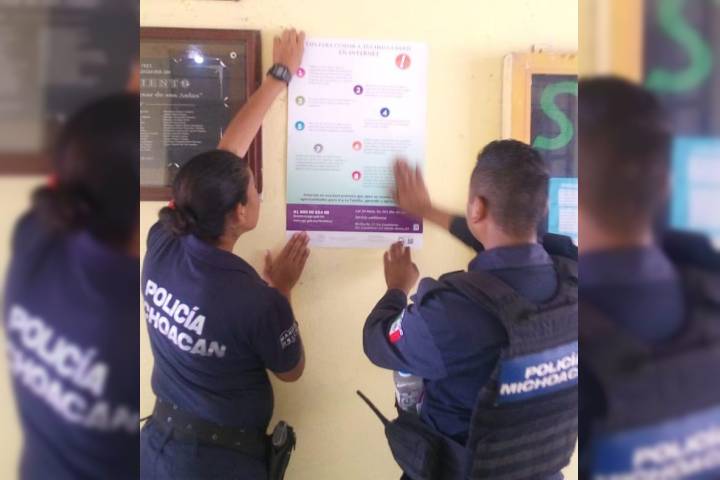 Los elementos de la Policía Michoacán, acudieron a las escuelas secundarias Melchor Ocampo y José María Morelos y Pavón, respectivamente, para pegar material gráfico en las aulas y sus inm... Ver más...