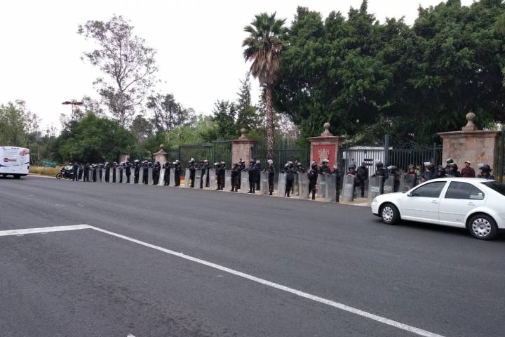 A fin de garantizar la tranquilidad de la población, elementos de la Unidad de Restablecimiento del Orden Público (UROP), se encuentran desplegados en la zona, ante una manifestación prevista por un grupo de personas.