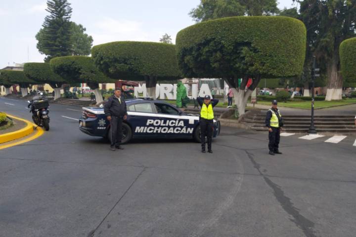 A fin de garantizar la tranquilidad de la población, elementos de la Policía Michoacán mantienen presencia en las inmediaciones de las oficinas, con la encomienda de salvaguardar a la ciudadanía.