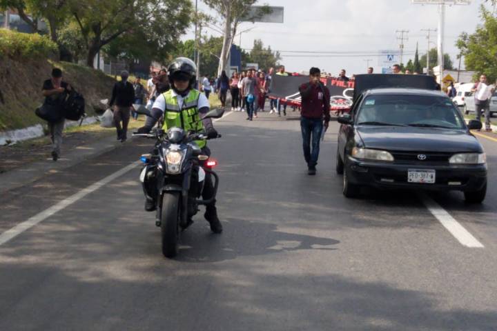Con el objetivo de salvaguardar la integridad física de quienes participan en la movilización, agentes de la Policía Michoacán vigilan el avance de la misma, la cual se tiene previsto arribe al Centro Histórico.
