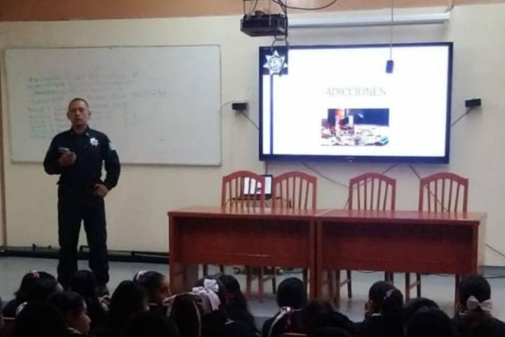 Ejemplo de ello, agentes de la Policía Michoacán impartieron pláticas informativas sobre la prevención de las adicciones y la extorsión virtual, en beneficio de 104 alumnos de la Escuela Secundaria Federal Nicolás Romero.