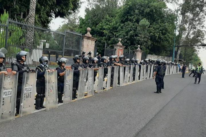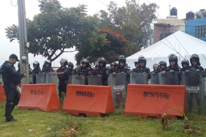 Con el objetivo de mantener el orden público y atender cualquier hecho, elementos de la Policía Michoacán mantienen presencia dentro y fuera del inmueble.