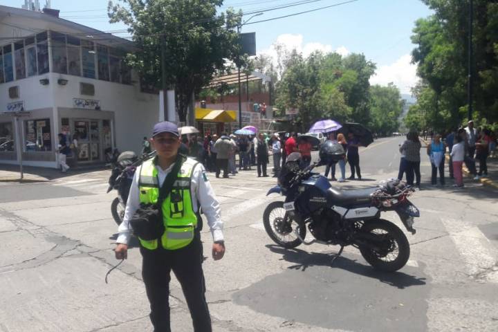 Agentes de Tránsito y Movilidad de la Policía Michoacán mantienen labores en el sitio, a fin de garantizar la integridad física de la población.