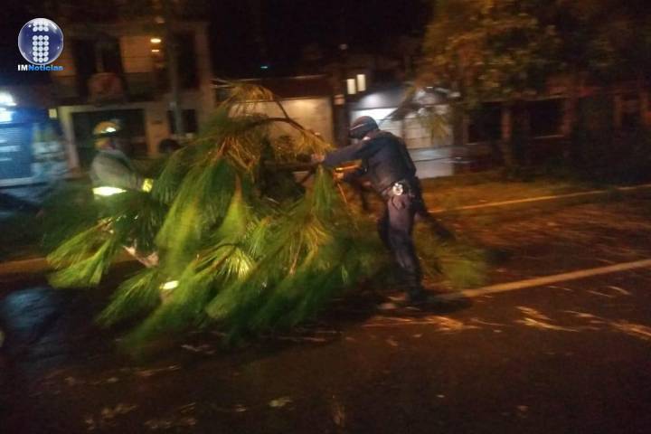 En coordinación con elementos de Protección Civil y Bomberos, los agentes de la Policía Michoacán se encuentran realizando maniobras para quitar los troncos y preservar la seguridad de la población.