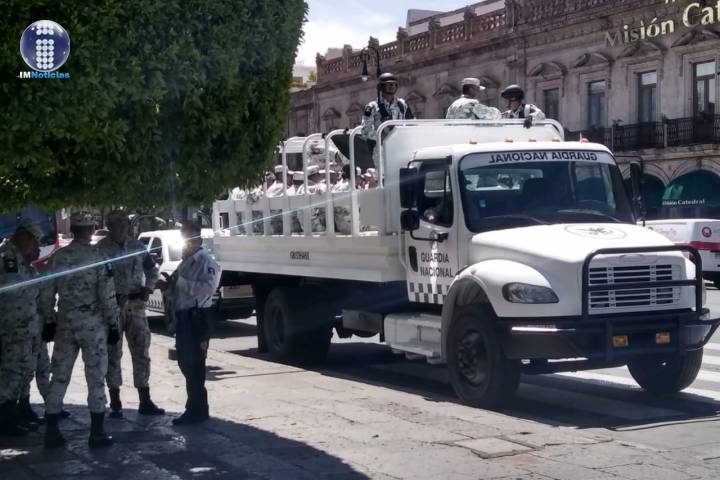 NOTICIAS 03/07/2019Guardia Nacional ya patrulla MoreliaLos elementos de la Guardia Nacional (GN) que arribaron a esta ciudad de Morelia ya patrullan la capital, este miércoles se les pudo ver en diversos recorridos que hacían a pie y a bordo de unidades automotrices en el Centro Histórico y en otros puntos de esta localidad.