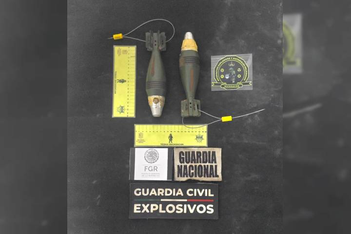 NOTICIAS 10/08/2025SSP desactiva dos granadas de fabricación militar, en Zacapu Personal de la Secretaría de Seguridad Pública (SSP) coadyuvó en el aseguramiento y la destrucción de dos granadas de mortero calibre 60 milímetros de fabricación militar, localizadas por la Guardia Nacional en el municipio de Zacapu.