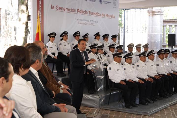 NOTICIAS 15/04/2019Policía Turística de Morelia brindará orientación y salvaguardaCon el objetivo de dotar de salvaguarda y orientación en la información de la ciudad, el presidente municipal Raúl Morón Orozco arrancó labores de la Primera Generación de la Policía Turística de Morelia , la cual en una primera instancia estará conformada por 24 elementos que realizarán sus labores en el Centro Histórico.