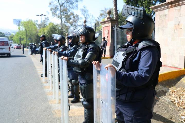 NOTICIAS 05/04/2019Tras agresión de manifestantes, Policía Michoacán refuerza operativo en Centro HistóricoLa Secretaría de Seguridad Pública (SSP), reforzó el operativo desplegado en el Centro Histórico de Morelia, para resguardar y vigilar la integridad de ciudadanos que transitan en el primer cuadro de Morelia, luego de la agresión y el connato de violencia que protagonizaron manifestantes procedentes de Arantepacua y que dejó tres elementos lesionados, quienes ya son atendidos.
