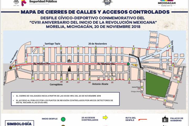 La PolicÃa Michoacán dará inicio con el cierre de 43 vialidades a partir del primer minuto del dÃa martes 20 de noviembr... Ver más...