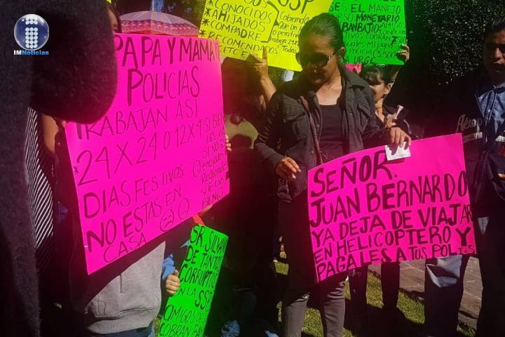 Un grupo de familiares de los elementos de la PolicÃa Michoacán se manifestó durante este lunes, los inconformes refirieron que su protesta fue por falta de pagos.