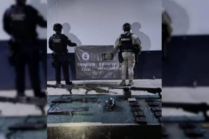 NOTICIAS 17/07/2025SSP y Defensa aseguran arsenal con barret, ametralladoras y granadas en AguilillaTras llevar a cabo labores operativas en esta demarcación, los agentes de las secretarías de Seguridad Pública (SSP) y de la Defensa Nacional (Defensa), aseguraron un arsenal que incluye un barret, dos ametralladoras y seis granadas; también se decomisó equipo táctico y dos vehículos que contaban con leyendas alusivas a una célula delictiva.