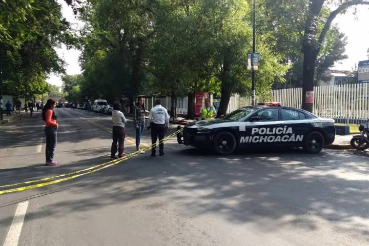 Agentes de la Policía Michoacán se encuentran desplegados en la avenida Ventura Puente, en su cruce con avenida Acueducto, a fin de agilizar el tránsito vehicular ante la presencia de los manifestantes.