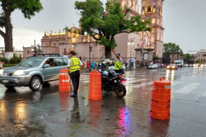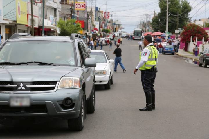 Agentes de la Dirección de Tránsito y Movilidad realizan cortes a la circulación para evitar accidentes entre conductores y peatones.
