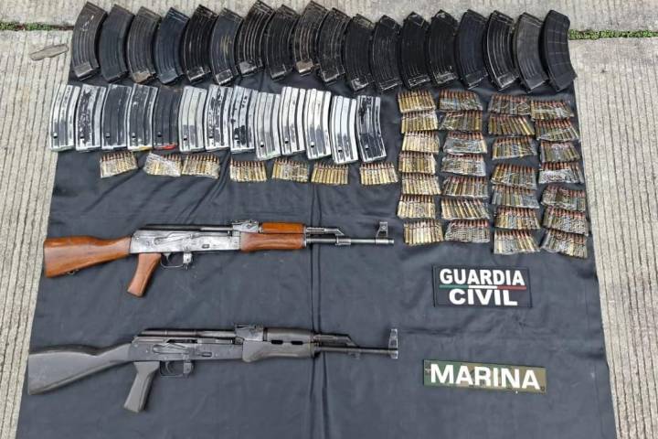 Durante tareas de prevención disuasivas, elementos de la Secretaría de Seguridad Pública (SSP), en coordinación con la Secretaría de la Marina (Semar), aseguraron dos armas de fuego largas, cartuchos y cargadores útiles, así como una camioneta en el municipio de Lázaro Cárdenas. Fue sobre una brecha ubicada en la tenencia La Mira, donde los efectivos visualizaron un automotor de la marca Toyota en aparente estado de abandono; por lo...