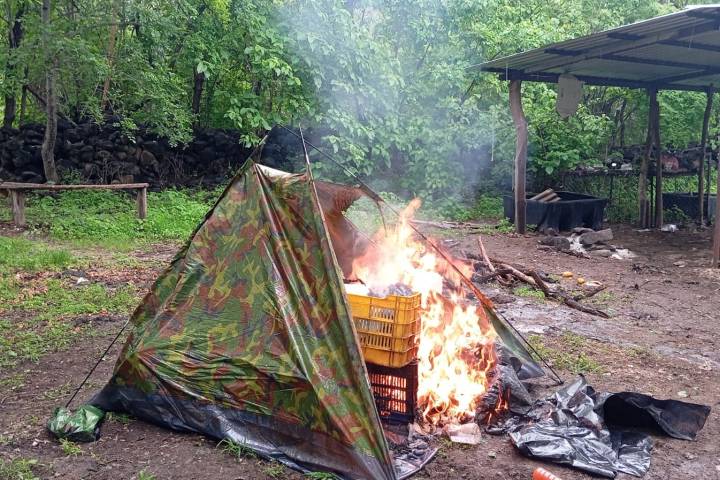 En labores coordinadas, elementos de las secretarías de Seguridad Pública (SSP) y de la Defensa Nacional (Defensa), localizaron e incineraron 16 costales de hierba verde seca con las características propias de la marihuana, en la localidad del Ranchito, municipio de Tuzantla. Los agentes de la Guardia Civil y del Ejército Mexicano localizaron en un camino de terracería dichos costales, mismos que tras una verificación oficial se constat...