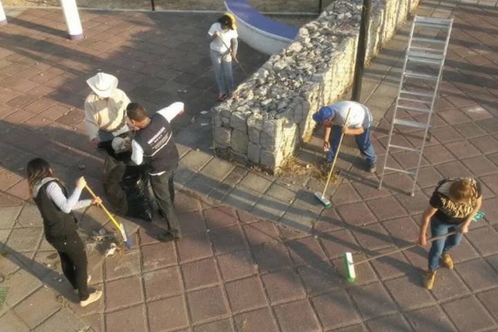 Por instrucciones del titular de la SSP, Juan Bernardo Corona Martínez, personal de la institución realizó una faena de limpieza en la plaza de la colonia La Aldea, convirtiéndola en un lugar más seguro para la convivencia de sus habitantes.