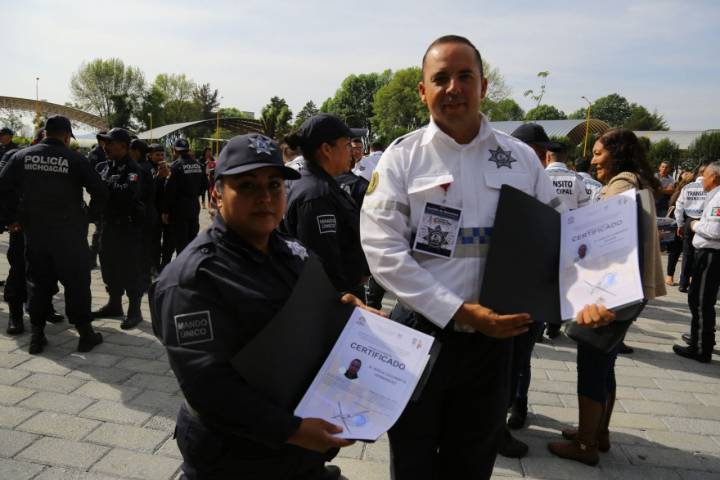 Los policías graduados del Instituto Estatal de Estudios Superiores en Seguridad y Profesionalización Policial del Estado de Michoacán (IEESSPP) tuvieron que tomar 972 horas del curso de formación inicial y aprobaron satisfact... Ver más...