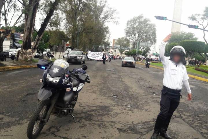 Con el objetivo de garantizar la seguridad de la población en general, elementos de la Unidad de Restablecimiento del Orden Público (UROP) vigilan la movilización que culminará en el Centro Histórico de Morelia.