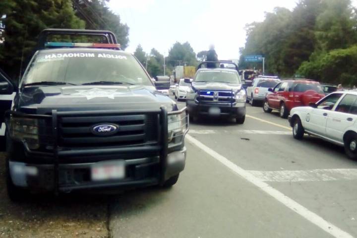 El personal de la Policía Michoacán se mantiene resguardando el orden en la zona, donde los manifestantes cerraron ese tramo carrete... Ver más...