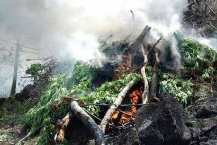 Al realizar recorridos de vigilancia en este municipio de Turicato, elementos de las secretarías de Seguridad Pública (SSP) y de la Defensa Nacional (Sedena) localizaron y destruyeron más de diez mil plantas de marihuana.