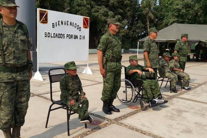 La Secretaría de la Defensa Nacional (Sedena) nombró soldados por un día a niños de centros de educación especial del municipio de Lázaro Cárdenas mediante una ceremonia en la que participaron las autoridades militares del 82 Batallón de Infantería.