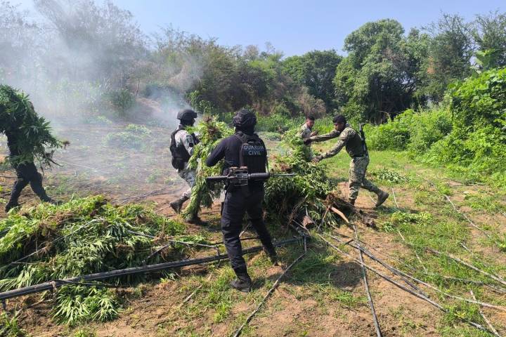 El aseguramiento de la droga se realizó en la localidad de Los Pozos, donde los agentes del Ejército Mexicano y la Guardia Civil patrullaban en una brecha de t... Ver más...