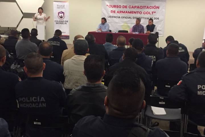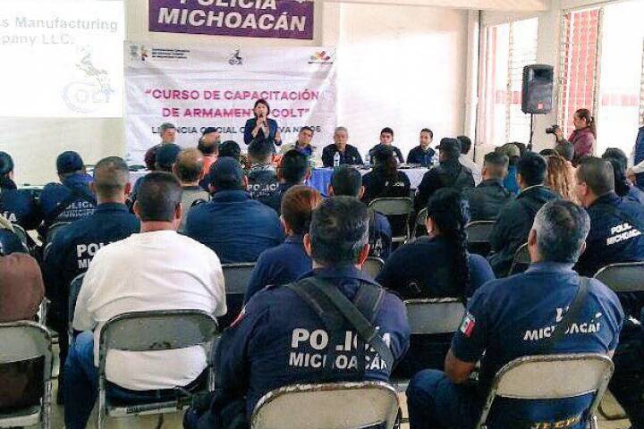 Como parte de las acciones de fortalecimiento de la seguridad en Michoacán, el Secretariado Ejecutivo del Sistema Estatal de Seguridad Pública (SESESP), que encabeza Ángeles Názares Jerónimo, capacita en manejo de armamento tipo Colt a los directores, armeros o encargados de los depósitos o bancos de armas de las corporaciones policiales de 50 municipios de la entidad.